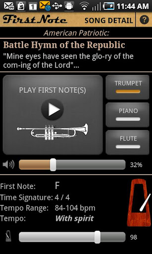 Originally written for a private party, FirstNote is now available to all. New songs are being added constantly, as well as additional notes for existing songs. Sync often to get the latest. Let us know of any improvements, fixes, concerns, or compliments!
